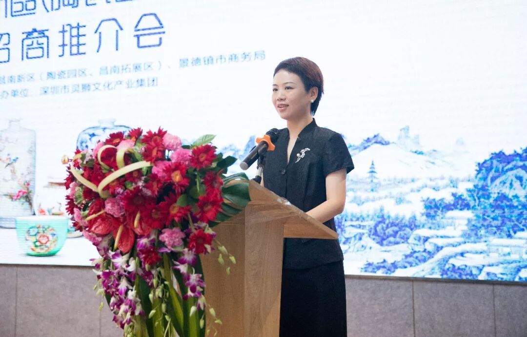 随后,深圳灵狮集团总裁唐英、深圳凯光集团副总裴志文做了发言,对陶瓷产业发展前景充满期待,表达了对产业合作、携手景徳镇共同发展的意愿。唐英表示,招商推介会在这里举行,这是两地文化交流的又一个重要时刻,相信通过推介会,将有利于搭建深圳与景德镇艺术创意合作平台,形成两地文化对话交流机制,推动深圳设计与景德镇产业融合发展。